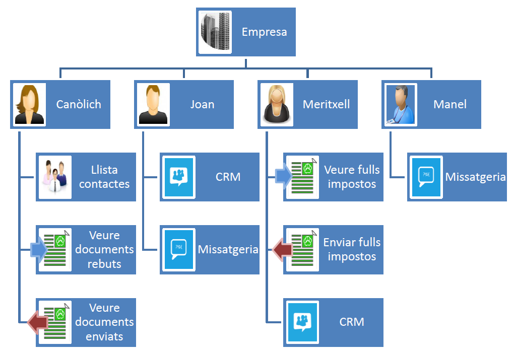 Esquema d'exemple amb l'administració amb permisos diferents segons l'usuari